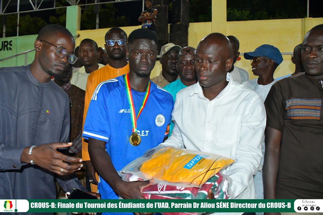 Le parrain, le Dr Aliou Sène, directeur du CROUS de Bambey, a honoré les deux équipes finalistes en offrant des trophées (meilleur joueur, meilleur buteur, meilleur gardien), des jeux de maillots, des médailles, des ballons ainsi qu’une enveloppe financière à chacune.