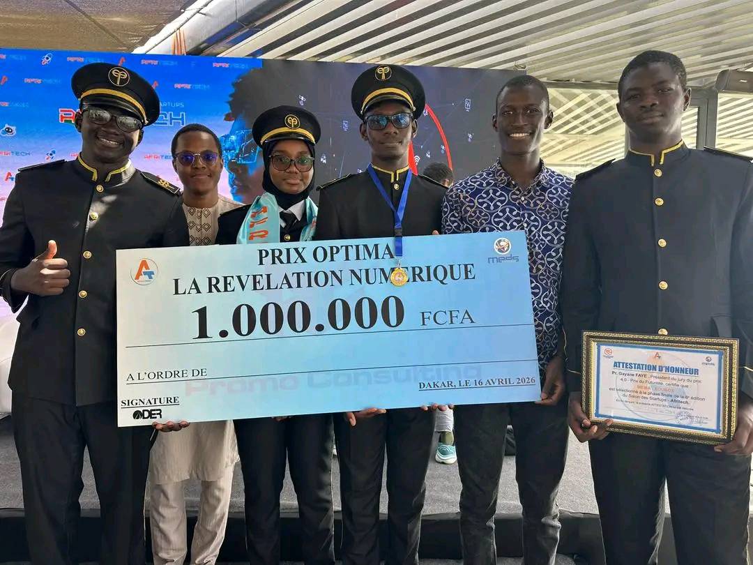 de l’Ayute Africa Challenge avec le projet Horizonis - Mouhamadoul Moustapha DIAGNE (DIC1 GIT), Mamadou Falilou DIAW (DIC2 GIT), Oulèye Baba LY (TC2), Abdoulaye Sy NDAW (DIC2 GIT) et Papa Tahibou TALL (DIC2 GI), lauréats du deuxième prix