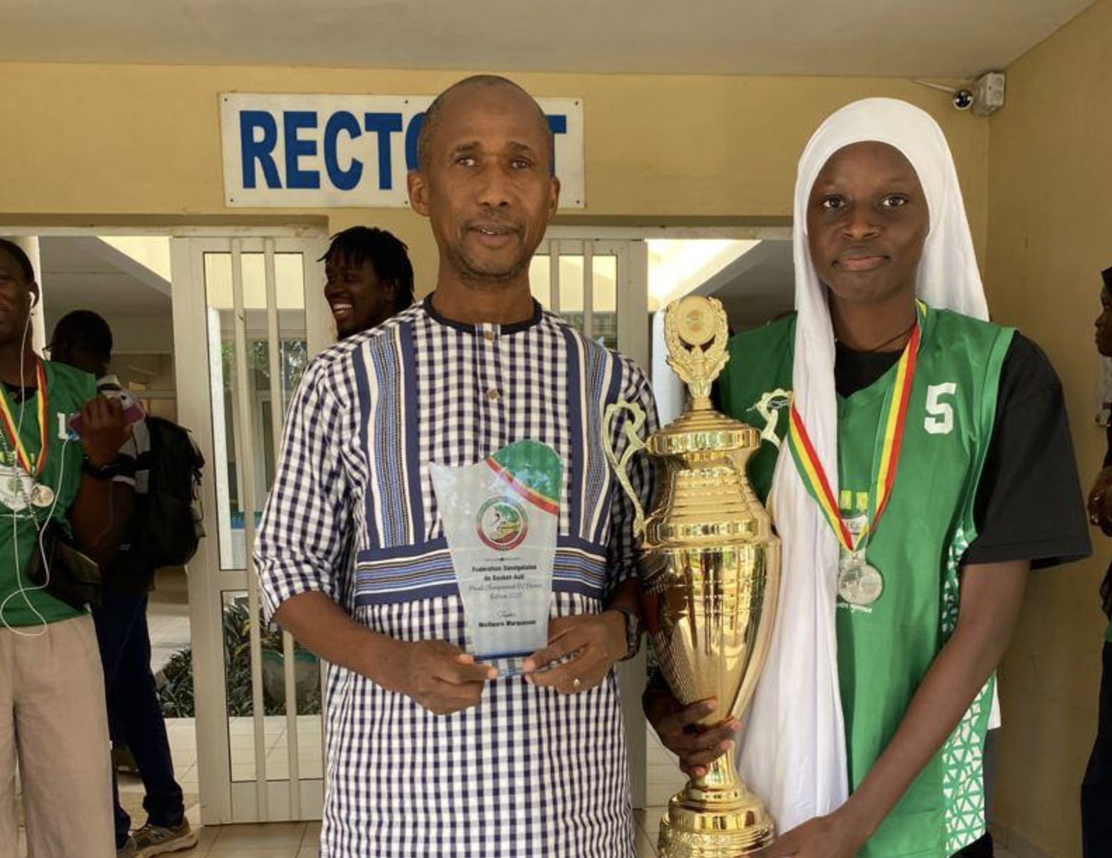 Dans son allocution, le Recteur a salué le rôle déterminant du président de la section basket-ball, M. Oumar GNING, des dirigeants de l’ASUC, des entraîneurs, du staff technique et de l’ensemble de l’encadrement. Il a souligné leur rigueur, leur engagement quotidien et leur sens de l’organisation, autant de qualités qui ont permis à l’équipe de franchir chaque étape de la compétition avec confiance et ambition.