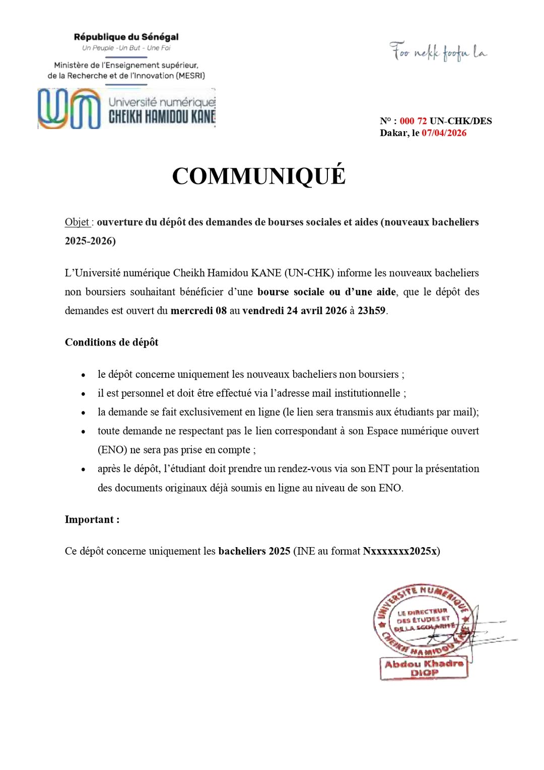 Dépôt des bourses sociales et aides pour l’année académiques 2025-2026