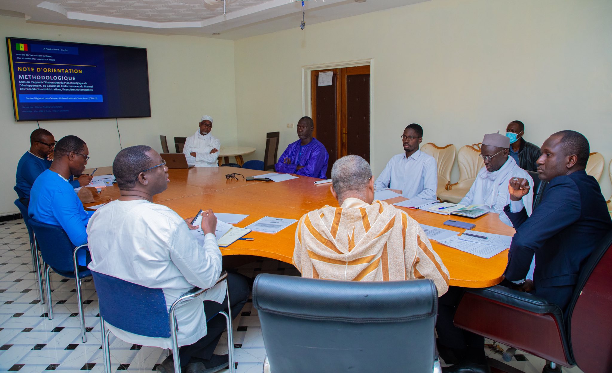 À cet effet, un Comité de coordination a été mis en place afin d’assurer l’orientation stratégique, le suivi et la bonne conduite du processus. La réunion de lancement s’est tenue sous la présidence du Dr Babacar Diop, Directeur du CROUS, en présence de M. Amath Dia, Chef des Services administratifs, M. Mamadou Diop, Conseiller technique du Directeur, M. Adama Mbaye, Secrétaire général, M. Momar Diop, Coordonnateur de la Cellule Études, Suivi-Évaluation et Planification, M. Malick Diop, Conseiller juridique, M. Papa Ibrahima Ndiaye, Conseiller financier, M. Mody Gueye, membre de la Cellule Études et Suivi, ainsi que M. Alassane Sow, Consultant et Économiste.