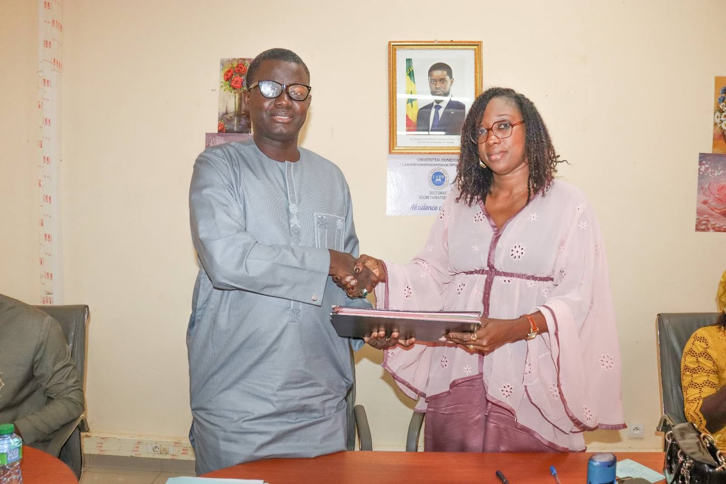 Mme Seynabou Samb était accompagnée par la responsable du MIER (Master interuniversitaire en énergie renouvelable), Mme Marthe Diatta, de M.Cheikh Ndiaye, représentant des structures d’accompagnement à l’entreprenariat (SAE), sous la présidence du secrétaire général de l’ UADB M.A.S Mbengue, du Directeur de l’UFR SATIC, des Directeurs centraux, des professeurs enseignants-chercheurs, des étudiants, et de plusieurs membres de la communauté universitaire.