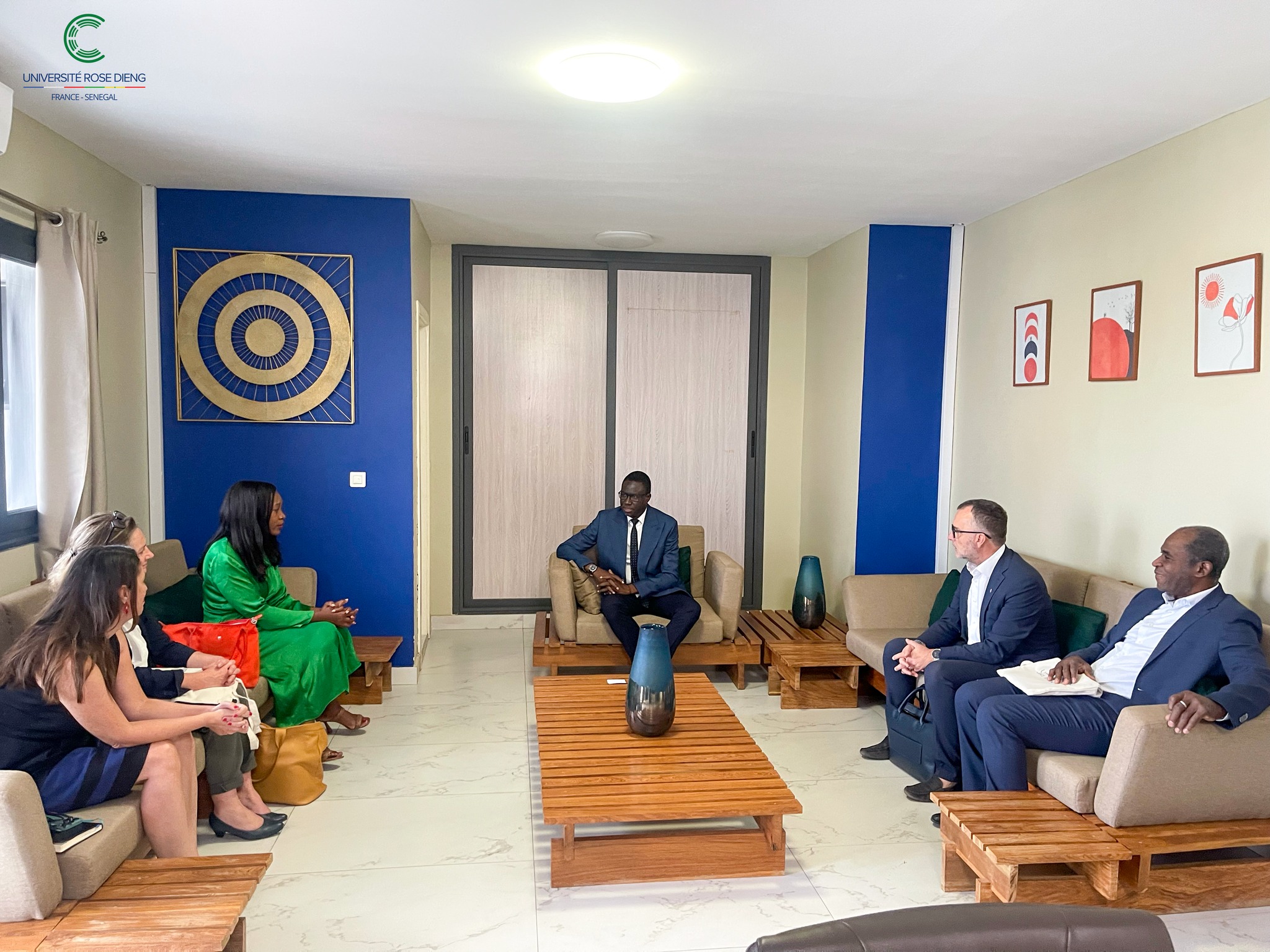Ce mardi 26 novembre 2025, l’Université Rose Dieng France–Sénégal (URDFS) a eu l’honneur d’accueillir une délégation de la Région Île-de-France. Cette dernière était conduite par Madame Anne-Louise MESADIEU, Ambassadrice de la Région Île-de-France et Déléguée spéciale chargée de la Coopération internationale et de la Francophonie. Étaient également présents le Dr Constant Vodouhê, Vice-Président de DREP Afrique, ainsi que M. Frédéric Bardenet, membre du Conseil d’Administration de l’URDFS et président du comité sénégalais des CCEF.